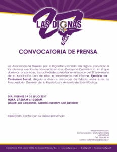 CONVOCATORIA DE PRENSA por Las Dignas El Salvador | Jul 13, 2017 | 0 Comentarios Enviar comentario Cancelar la respuestaTu dirección de correo electrónico no será publicada. Los campos obligatorios están marcados con *Comentario * Nombre * Correo electrónico * Web Guarda mi nombre, correo electrónico y web en este navegador para la próxima vez que comente. Δ
